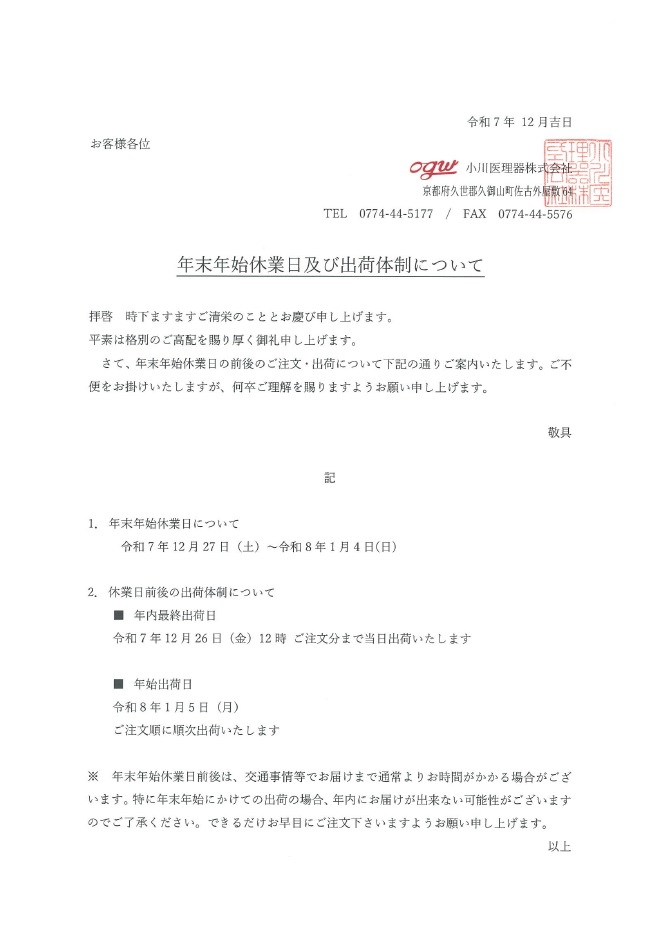 ■冬季休業期間 2025年12月27日(土)~2026年1月4日(日) 5日(月)より通常営業致します。